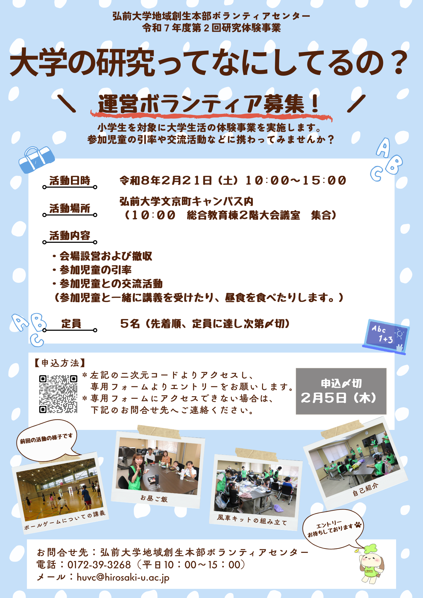 ご不明な点については弘前大学ボランティアセンターまでお問合せください
