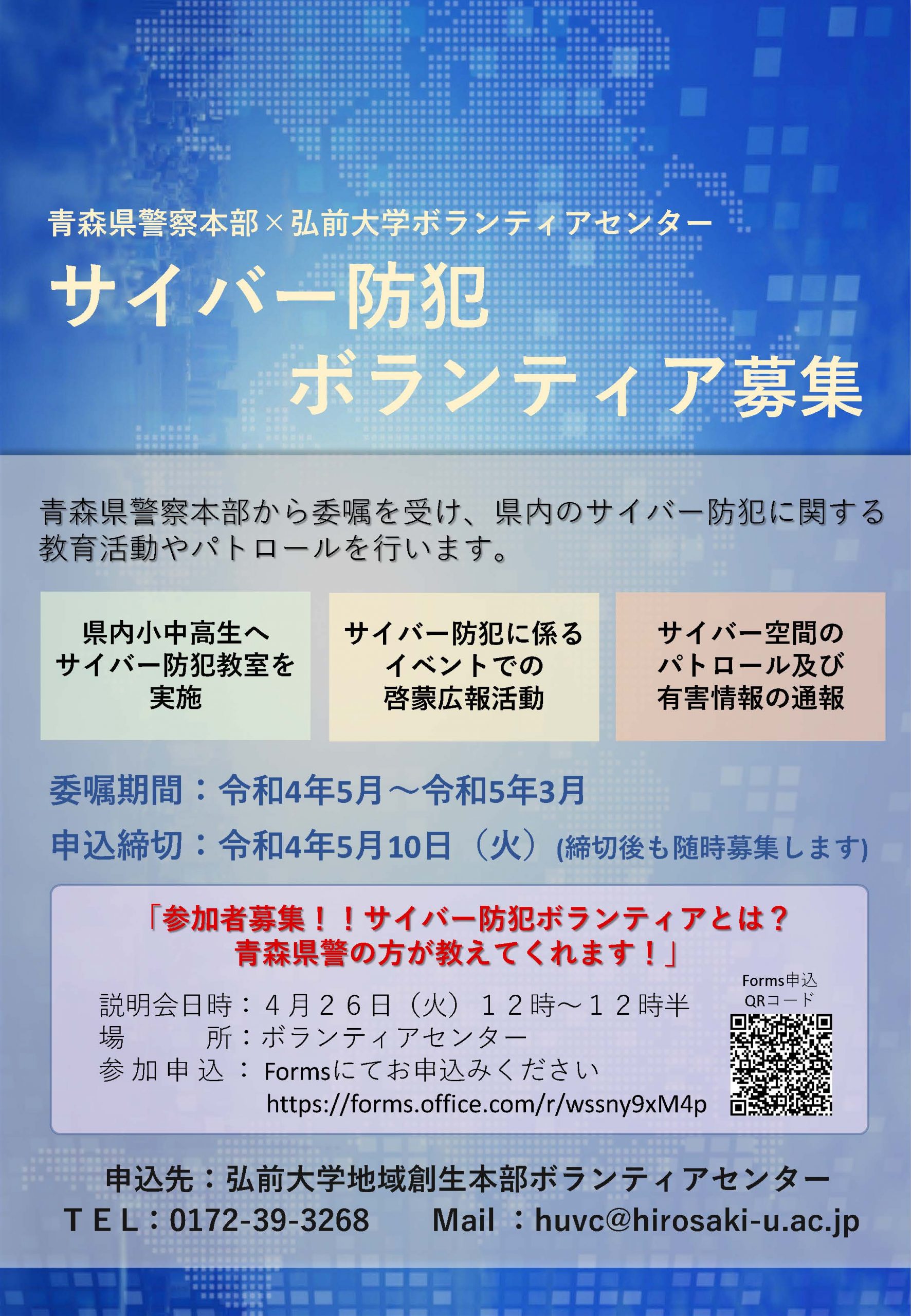 <随時募集中>【青森県警察本部×弘大ボラセン】サイバー防犯ボランティア募集!!