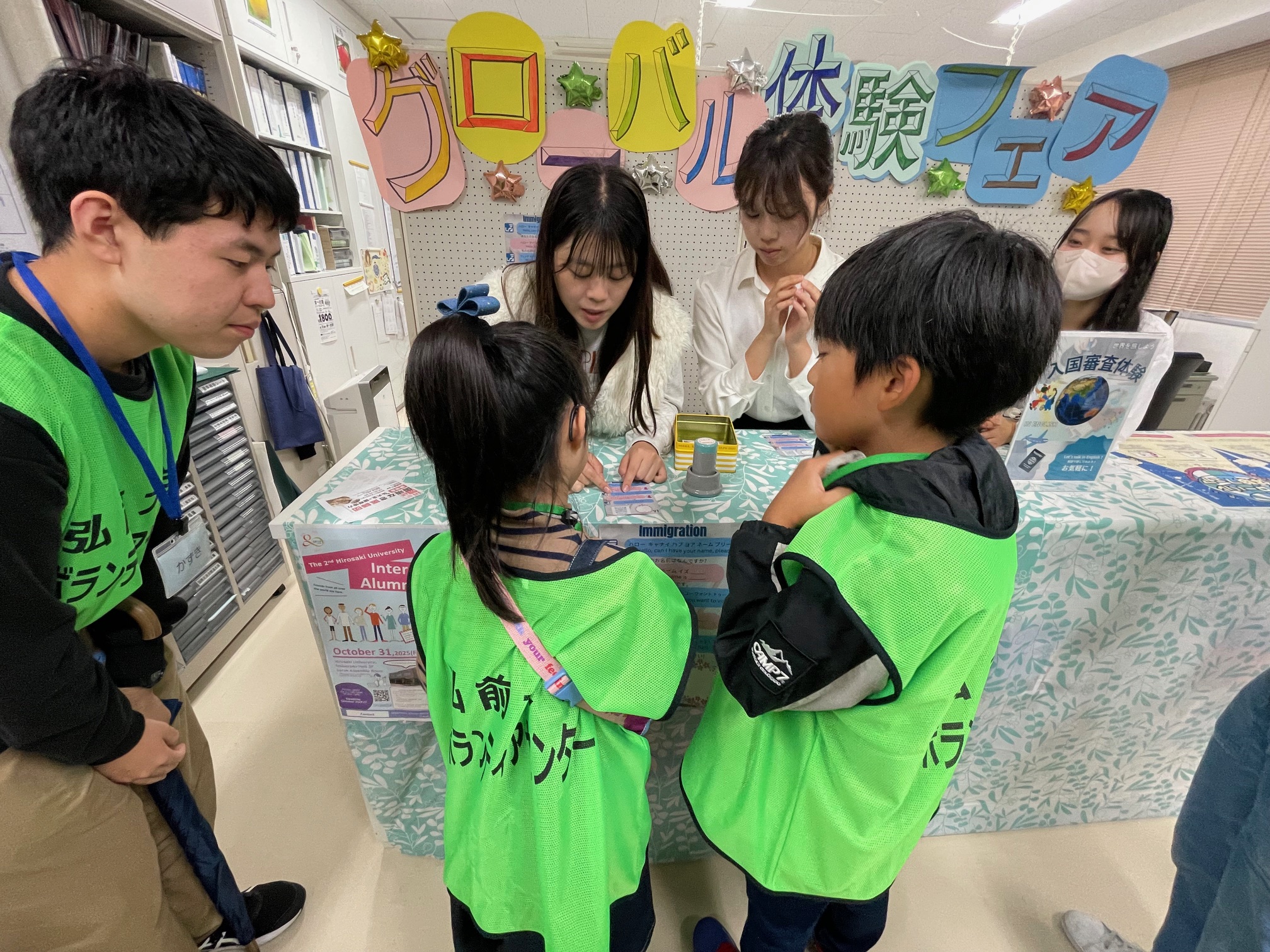 学生ボランティア引率のもと、まずは総合教育棟を訪れ、北日本考古学研究センター展示室にて「縄文土器・土偶作品展」を見学し、国際連携本部サポート・オフィス「グローバル体験フェア」では入国審査を体験したり、「医学科展」にてボウリングや輪投げで細菌や身体の器官について楽しみながら学んだり、外科手術体験や妊婦体験などをしました。