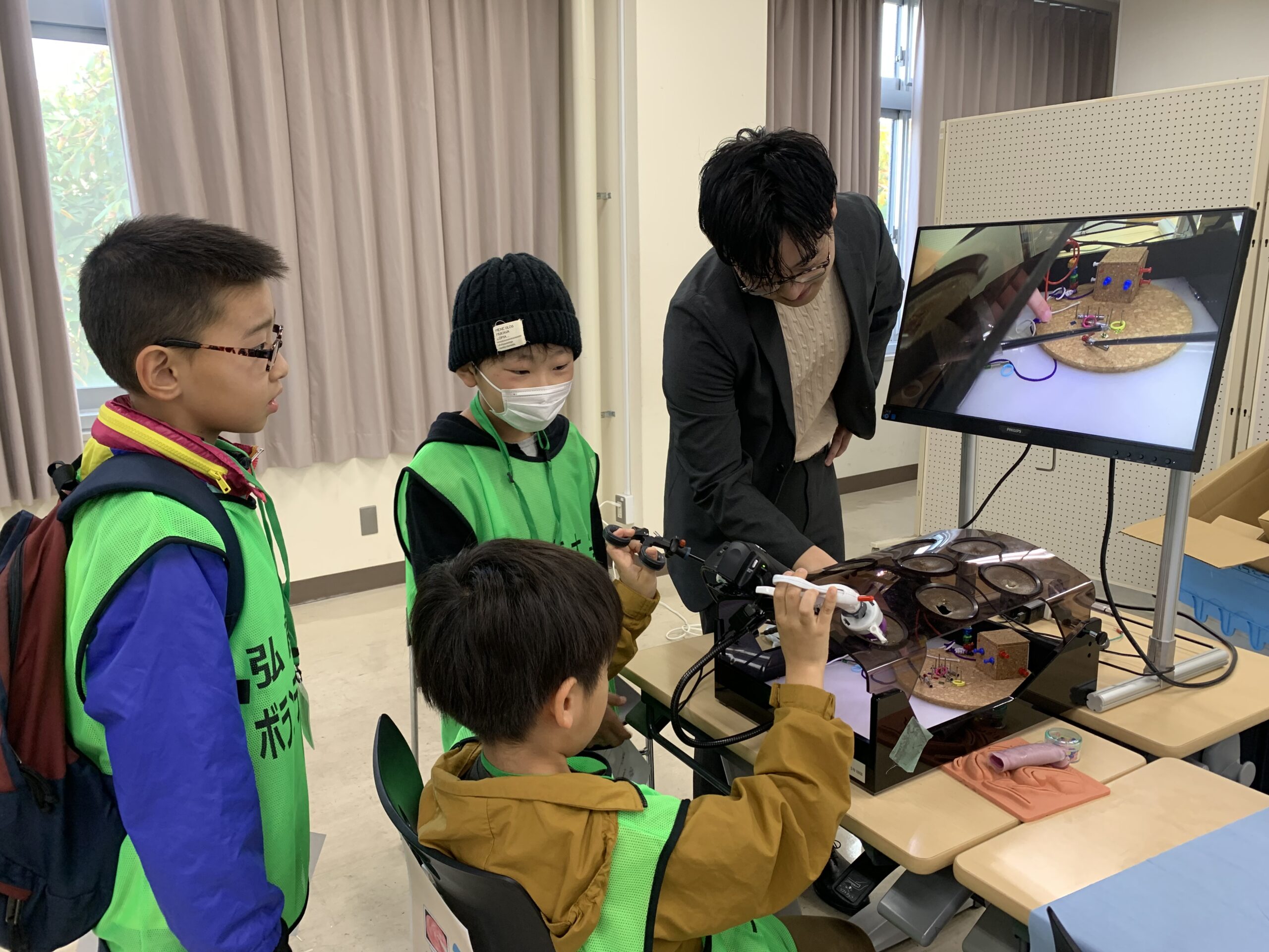 次に、理工学部を訪れ、ロボティクス研究会による「ロボット・電子工作展示」ではロボットやさまざまな機械や装置の操縦をしました。